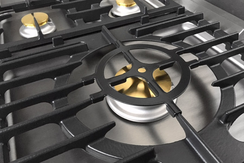 Le réducteur central se place au dessus du feu de 5 Kw pour l'utilisation des casseroles de faible diamètre. Il peut aussi se positionner en lieu et place du tampon de la plaque coup de feu.