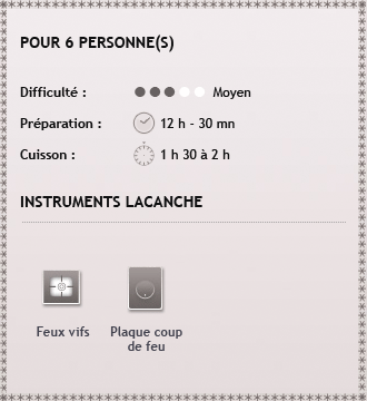 - Cette recette nécessite la préparation d’une marinade (durée : 12 heures).