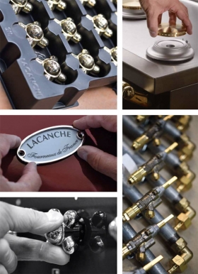 Acier, inox, cuivre, laiton, fonte, beaucoup de matières nobles sont utilisées pour la fabrication des pièces et composants d'un fourneau Lacanche. Ces matériaux garantissent une grande fiabilité d'utilisation dans le temps. Les parures de couleur émaillées réalisées spécialement pour chaque commande, dans un atelier dédié, apportent la finition colorée inaltérable et lumineuse. Le secret de fabrication “maison“ réside aussi dans un savoir-faire artisanal maîtrisé. Lacanche construit ses pianos de cuisson à l’unité et les assemble manuellement. Pour chacune des étapes de fabrication de tôlerie, de chaudronnerie, de soudure ou de polisage, comme pour l'assemblage, rien ne remplace l'expérience, le coup d’œil et la main experte.